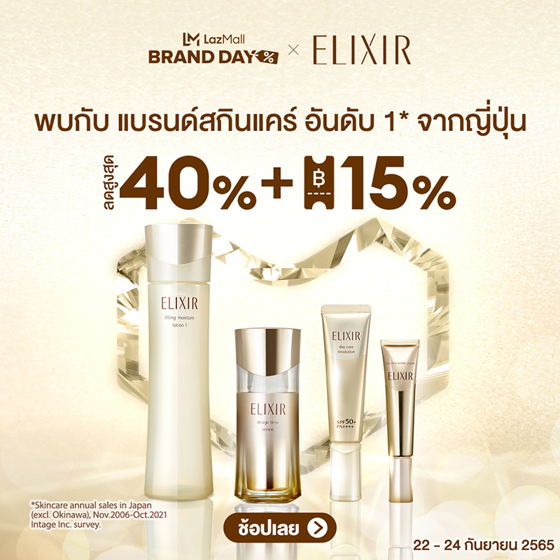 ยังไม่หมดเพียงเท่านี้ ลาซาด้าชวนมาบำรุงผิวให้อ่อนเยาว์อยู่เสมอกับ Elixir ผลิตภัณฑ์ความงามในเครือชิเซโด้ ผู้เชี่ยวชาญด้าน Anti-aging การันตีด้วยยอดขายอันดับ 1 ในญี่ปุ่น ที่ตอนนี้ได้เปิดจำหน่ายอย่างเป็นทางการแล้วครั้งแรกบน LazMall มอบนิยามผิวสวยบทใหม่ “Pearl Glow Skin” TSUYADAMA (สึยาดามะ) เผยผิวกระชับ ชุ่มชื้น กระจ่างใส อย่างเป็นธรรมชาติจากภายใน ด้วยเทคโนโลยีจากการค้นคว้าวิจัยด้านคอลลาเจนตลอด 39 ปี สำหรับการฟื้นบำรุงผิวหย่อนคล้อยและริ้วรอยแห่งวัยโดยเฉพาะ เตรียมปลดล็อกความสวยกับ Elixir พร้อมโปรโมชันสุดพิเศษ ลดสูงสุดถึง 35% และรับคูปองลดเพิ่มสูงสุดอีก 1,000 บาท* เฉพาะวันที่ 22 กันยายนนี้