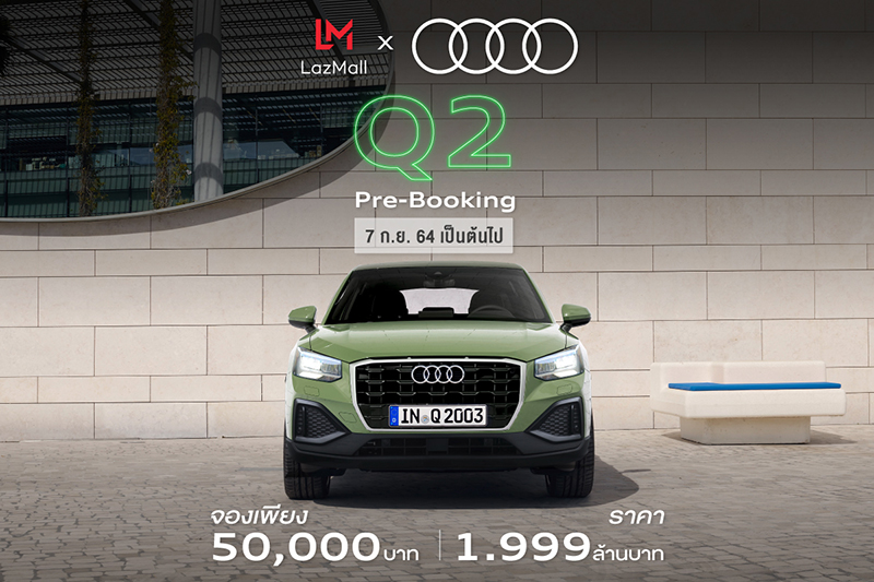 ลาซาด้า (LAzada) ผู้นำด้านอีคอมเมิร์ซในเอเชียตะวันออกเฉียงใต้ จับมือ อาวดี้ ประเทศไทย เปิดตัว Audi Q2 จำนวนจำกัด ที่มีเพียง 4 คันในประเทศไทยบนแพลตฟอร์มอีคอมเมิร์ซที่แรกและที่เดียว ให้นักช้อปจองผ่าน Audi Flagship Store บน LazMall พร้อมข้อเสนอสุดพิเศษเพียง 1.999 ล้านบาท ที่ลาซาด้าเท่านั้น