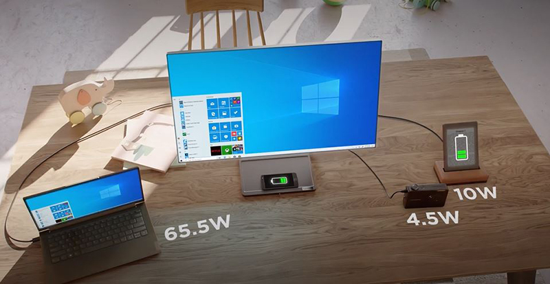 นอกจากนี้ผู้ใช้งานยังสามารถเชื่อมต่อมอนิเตอร์เพื่อขยาย รับชม และแชร์หน้าจอผ่านการเชื่อมต่อ USB Type-C Gen2 ที่เพิ่มเข้ามานอกเหนือจากพอร์ต HDMI และ Display ที่มีอยู่ทั่วไป โซลูชั่นเคเบิ้ลเดี่ยวคู่กับฟังก์ชัน Smart Power2 ยังสามารถช่วยจัดการและกระจายไฟมากถึง 80W อย่างมีประสิทธิภาพ เพื่อให้คุณสามารถทำงานที่หลากหลายอย่าง อาทิ งานข้อมูล วิดีโอ และเสียงควบคู่กับดีไวซ์ที่เชื่อมต่อกับ USB-C