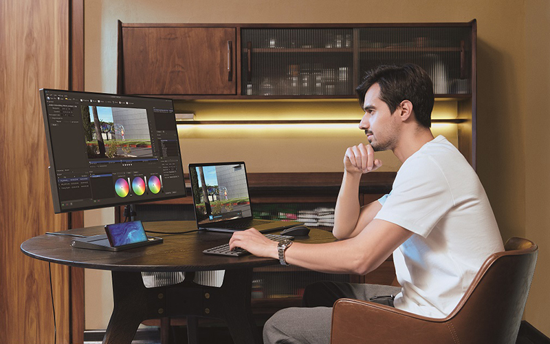 ทั้งยังแสดงสีได้ตรงปกเพื่อการรับชมภาพและวิดีโอที่งดงามเสมือนจริง นอกจากนี้ เครื่องยังรองรับขอบเขตสี DCI-P3 ได้ถึง 98% , ความลึกสี 10 bit จึงให้ขอบเขตโทนสีที่กว้างยิ่งขึ้นถึง 1.07 พันล้านสี เหมาะสำหรับทุกงานสร้างสรรค์ที่ต้องใช้แสงสี ไม่ว่าจะเป็นการตัดต่อวิดีโอ แต่งภาพ พรีเซนเทชั่นเสนอผลงาน ไปจนถึงการเล่นเกมทั่วไปอีกด้วยค่า Delta E<2 ของสีตั้งค่า Calibrate จากโรงงาน ให้คุณมั่นใจได้ว่า ค่าโทนสีและเฉดสีจะตรงปกในทุกการแก้ไขและระบายสีให้ได้ภาพที่สวยงามน่าประทับใจ