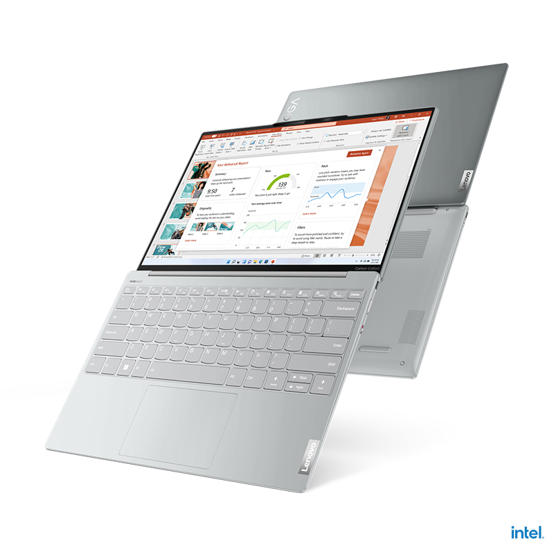 Yoga Slim 7i Carbon มอบประสิทธิภาพการทำงานแบบโมบายล์ที่น่าทึ่ง ผ่านตัวเครื่องที่มีน้ำหนักเพียงไม่ถึง 1 กก. และบางเพียง 14.8 มม. ตัวเครื่องมีความทนทานเป็นอย่างสูงเพราะทำจากโลหะผสมแมกนีเซียมเกรดเดียวกับที่ใช้ผลิตยานอวกาศ และเสริมด้วยคาร์บอนไฟเบอร์หลายชั้น มาพร้อมกับดีไซน์ขอบโค้งมนเพื่อความสะดวกสบายในการพกพา รวมถึงยังมีสีแบบทูโทนให้เลือกถึง 3 แบบ พร้อมคีย์บอร์ดแบบ edge-to-edge และแทร็คแพดที่ใหญ่ขึ้น ทำให้ Yoga Slim 7i Carbon เป็นอุปกรณ์คู่กายที่สามารถพกพาไปได้ทุกที่