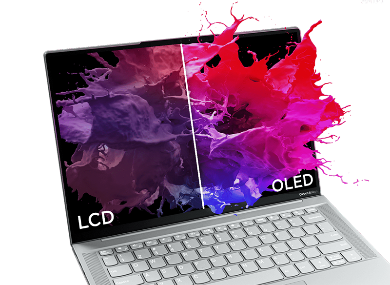 การใช้งานแล็ปท็อปเป็นเวลานานอาจจะส่งผลให้ดวงตาของคุณเกิดอาการล้าด้วยแสงสีฟ้า ปัญหานี้จะไม่พบในแล็ปท็อป Lenovo Yoga Slim 7 Carbon เพราะด้วยจอคุณภาพ OLED ขนาด 14 นิ้ว จาก Samsung Display ที่ผู้ใช้งานสามารถควบคุมและปรับสภาพแสงให้เหมาะสมกับการใช้งาน ผ่านการแสดงผลระดับ QHD+ ให้ภาพคมชัดไม่สะดุดด้วย Dolby Vision® ที่ออกแบบมาเพื่อให้จอมีคุณสมบัติและเกรดสีตรงเป็นพิเศษและได้รับการรับรองจาก VESA® DisplayHDR™ TrueBlack 500 ในด้านคุณภาพของการเล่นวิดีโอที่ดียิ่งขึ้นในรูปแบบการแสดงผลแบบ 16:10 และค่าสีที่ได้เกณฑ์มาตรฐานระดับ Delta E <2 ช่วงสี DCI-P3 100% ที่ได้รับจะเป็นเฉดสีที่ตรงและคมชัดยิ่งขึ้น เพลิดเพลินกับอัตราการรีเฟรชเรท 90 Hz ความสว่าง 400 – 600 นิต และยังได้รับการรับประกันจาก TÜV Eye Comfort ว่าปกป้องดวงตาของผู้ใช้งานจากแสงสีฟ้า เพื่อสุขภาพดวงตาของผู้ใช้งาน สำหรับกระจกหน้าจอสามารถอัพเกรดเป็นหน้าจอสัมผัสเพื่อเสริมความแข็งแรงทนทานด้วยกระจก Corning® Gorilla® Glass