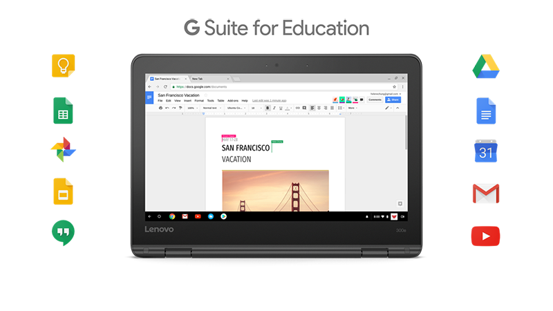 - Creativity Apps for Chromebook รวมเครื่องมือดิจิทัลทั้ง 5 เพื่อส่งเสริมทักษะการทำงานร่วมกัน การสื่อสาร และการคิดวิเคราะห์ ส่งเสริมนักเรียนในการใช้ความคิดสร้างสรรค์ และแอปต่างๆ สามารถควบคุมได้ผ่าน Google Admin Console