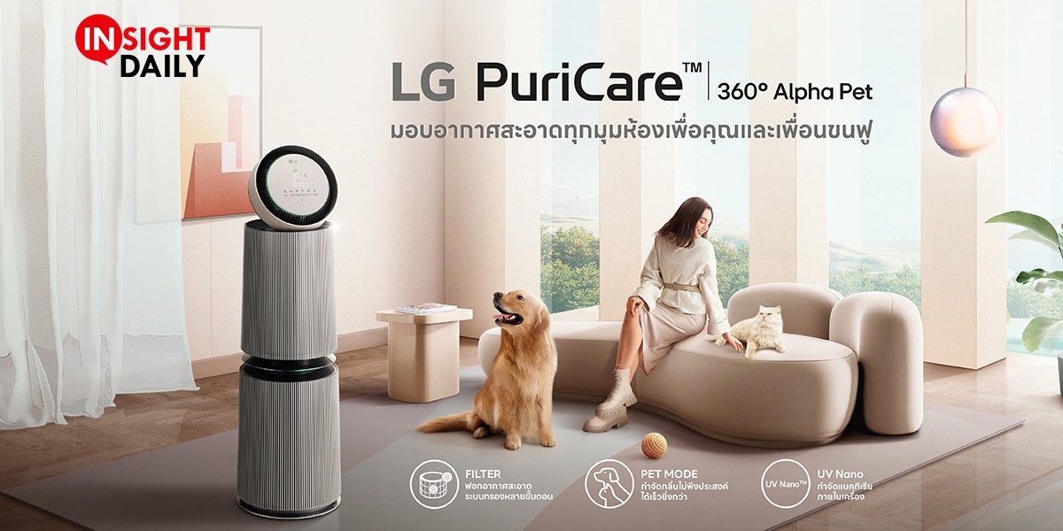 เพราะอากาศเป็นสิ่งสำคัญสำหรับสมาชิกทุกคนในครอบครัว โดยเฉพาะในบ้านที่มีสัตว์เลี้ยง แอลจีจึงได้เปิดตัว เครื่องฟอกอากาศ LG PuriCare 360° Alpha Pet ครั้งแรกของเครื่องฟอกอากาศสำหรับบ้านที่มีสัตว์เลี้ยง โดดเด่นด้วยฟังก์ชันการใช้งานที่หลากหลายสำหรับครอบครัวที่มีสัตว์เลี้ยงโดยเฉพาะ เช่น PET Mode  ตอบโจทย์การใช้งานสำหรับสัตว์เลี้ยง ซึ่งมีประสิทธิ์ภาพที่มากกว่า กรองไรขนสัตว์ได้ดียิ่งกว่าเดิม ช่วยลดกลิ่นสัตว์เลี้ยงภายในห้อง และฟิลเตอร์กรองสำหรับกำจัดมลพิษทางอากาศและกลิ่นได้มากยิ่งขึ้น Allergy Mode ช่วยลดการเกิดสารก่อภูมิแพ้ ด้วย UVnano ที่กำจัดแบคทีเรียภายในตัวเครื่อง 99.99% [1] และเทคโนโลยี Plasmaster Ionizer ที่มีประสิทธิภาพในการกำจัดแบคทีเรียและไวรัสในอากาศ เพิ่มประสิทธิภาพ ด้วย Clean Booster ฟอกอากาศได้เร็วและไกลขึ้นถึง 24% [2]