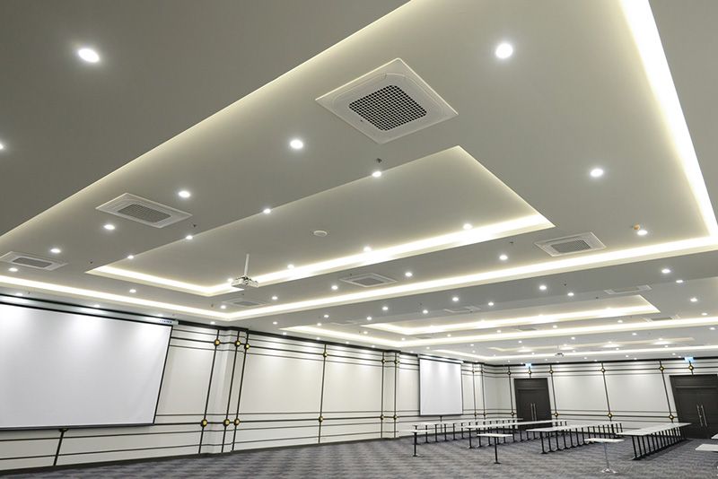 บริเวณ Convention Centre ซึ่งเป็นห้องประชุม เลือกใช้ระบบปรับอากาศ Dual Vane 4 Way Cassette