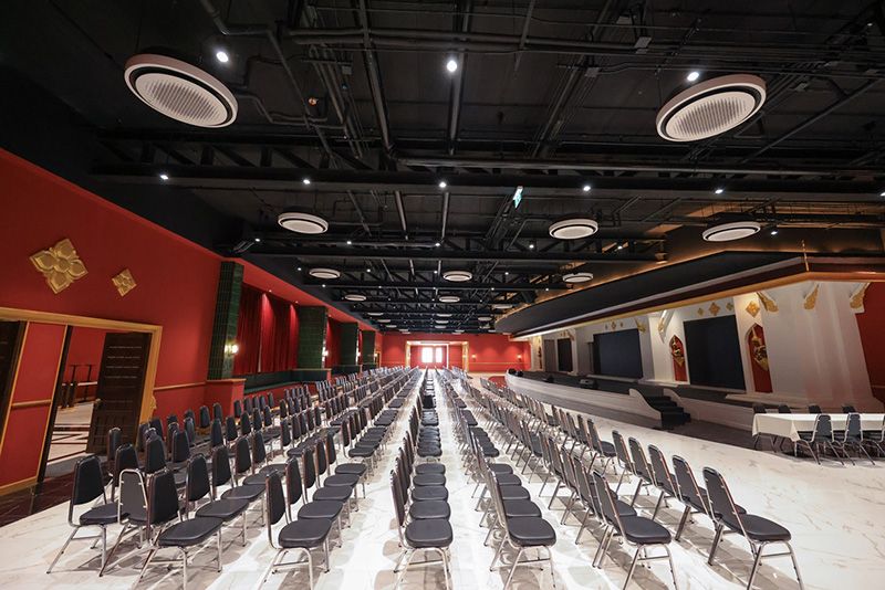 ชั้น 1 บริเวณ Dinner Theatre ซึ่งใช้ในการประชุมและจัดเลี้ยง เลือกใช้ระบบปรับอากาศ Round Cassette