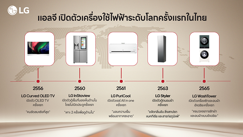 จากจุดเริ่มต้นในปี พ.ศ. 2531 บริษัท แอลจี อีเลคทรอนิคส์ (ประเทศไทย) จำกัด ได้เดินหน้าด้วยความมุ่งมั่นและทุ่มเทสู่การเป็นผู้นำด้านนวัตกรรมการผลิตและจัดจำหน่ายเครื่องใช้ไฟฟ้าและกลุ่มผลิตภัณฑ์เครื่องใช้ไฟฟ้าภายในบ้านภายใต้แบรนด์ “LG” (แอลจี) เพื่อนำเสนอ ‘นวัตกรรมเพื่อชีวิตที่ดีกว่า’ โดยแอลจีได้พัฒนาผลิตภัณฑ์ที่เสริมสร้างความสะดวกสบายและยกระดับคุณภาพชีวิตของผู้บริโภคชาวไทยอย่างต่อเนื่อง ด้วยสโลแกน ‘Life’s Good.’ ที่แอลจียึดถือในการดำเนินงานตั้งแต่วันแรก ทำให้แอลจีก้าวขึ้นมาเป็นผู้นำตลาดเครื่องใช้ไฟฟ้าที่ครองใจผู้บริโภคชาวไทยมาตลอดระยะเวลา 36 ปี
