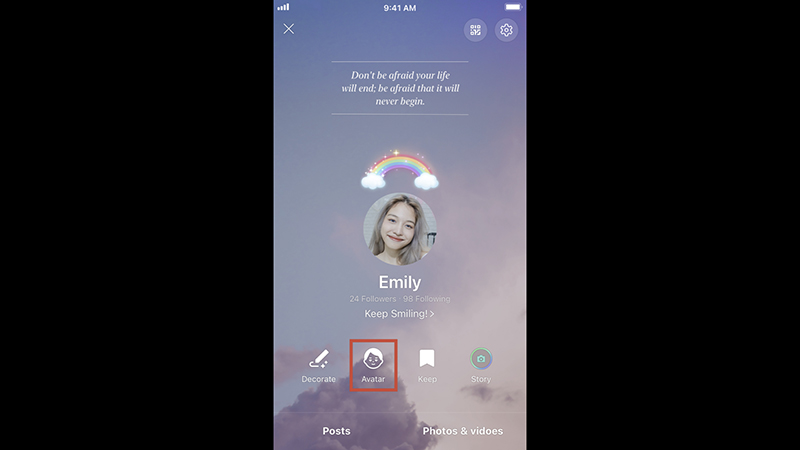 1. ไปที่หน้าโปรไฟล์ เลือก Avatar (หรือจะเข้าผ่านกล้องใน LINE ก็ได้)