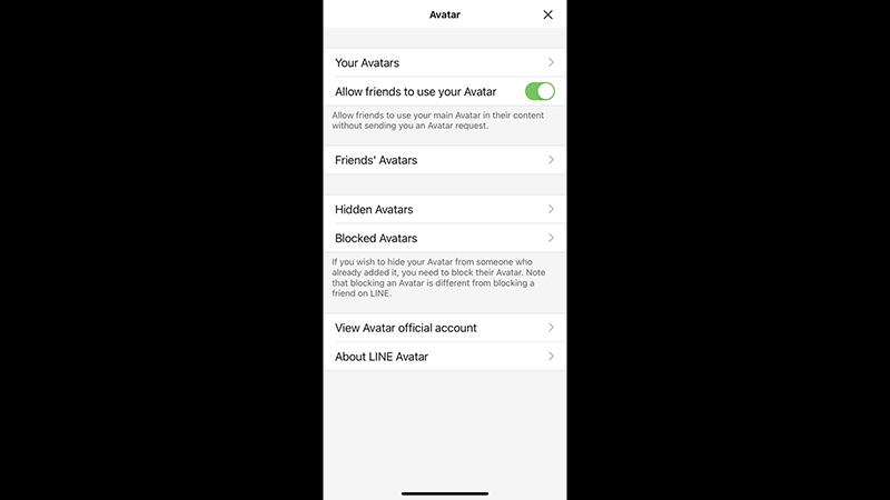 เพื่อนของเราจะสามารถใช้ Avatar ที่เราตั้งค่าให้เป็นตัวหลัก หากเราต้องการให้เพื่อนใช้ตัว Avatar อื่นของเรา เราก็ต้องไปเปลี่ยนให้ตัวนั้นเป็น Avatar หลักเสียก่อน โดยเมื่อใช้ Avatar ของเพื่อนคนนั้นๆ แล้ว จะไม่สามารถลบออกได้ ให้ใช้วิธีบล็อก หรือ ซ่อน เพื่อนบนหน้าตั้งค่า Avatar โดยจะไม่กระทบกับการเป็นเพื่อนกันบน LINE Chat