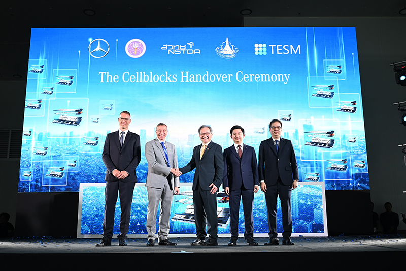 จากวิสัยทัศน์และนโยบายของแบรนด์เมอร์เซเดส-เบนซ์ ในระดับโลก ที่ขับเคลื่อนแผนงานด้านความยั่งยืนอย่างจริงจังในทุกมิติ หนึ่งในนั้นคือการผลักดันระบบเศรษฐกิจหมุนเวียน (Circular Economy) ภายใต้แนวคิด “Design for Circularity” ที่เริ่มตั้งแต่ขั้นตอนการผลิตในการเพิ่มสัดส่วนของการใช้วัสดุทดแทนที่มาจากกระบวนการรีไซเคิลชิ้นส่วนรถยนต์ ในขณะเดียวกัน เมอร์เซเดส-เบนซ์ ประเทศไทย ก็ได้เล็งเห็นประโยชน์ในการนำแบตเตอรี่แรงดันสูงที่ใช้สำหรับการทดสอบแบตเตอรี่ในกระบวนการผลิตมาพัฒนาเป็นแหล่งพลังงานที่ใช้เชื่อมต่อกับสายส่งไฟฟ้า โดยริเริ่มด้วยการลงนามบันทึกความร่วมมือ (MoU) กับสำนักงานพัฒนาวิทยาศาสตร์และเทคโนโลยีแห่งชาติ (สวทช.) พร้อมส่งมอบเซลล์แบตเตอรี่ลิเทียมไอออน (Cellblocks) ขนาด 2 เมกะวัตต์ ให้กับ สวทช. ภายในเดือนกรกฎาคม 2567 เพื่อสนับสนุนการวิจัย พัฒนา และร่วมมือถ่ายทอดเทคโนโลยีสู่สังคมไทย ทั้งยังยกระดับความสามารถของบุคลากรไทย และสนับสนุนการทดสอบแบตเตอรี่ยานยนต์ไฟฟ้าที่ผลิตในประเทศให้มีมาตรฐานระดับโลก