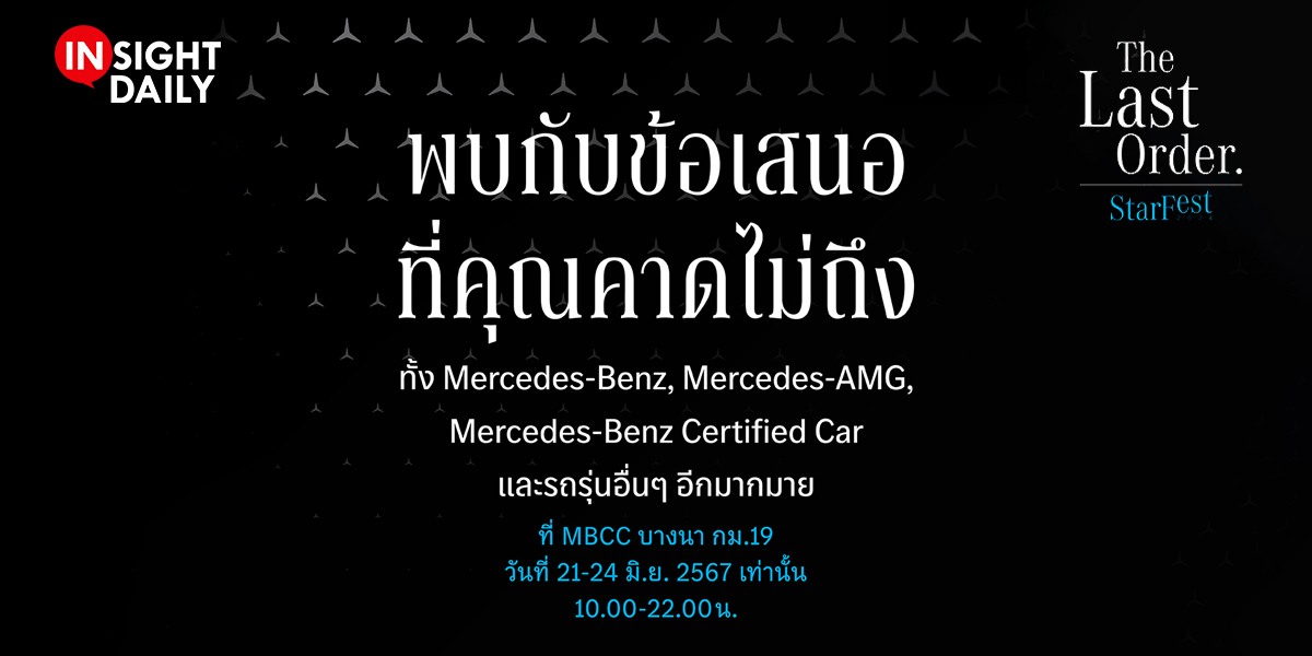 เมอร์เซเดส-เบนซ์ ประเทศไทย ส่งท้ายเทศกาล Mercedes-Benz StarFest 2024 จัดหนักด้วยดีลสุดท้าย “StarFest The Last Order” ลดราคารถยนต์สูงสุด 900,000 บาท ให้คุณเป็นเจ้าของรถยนต์สมรรถนะสูงตระกูลเอเอ็มจีด้วยราคาเริ่มต้นเพียง 2.68 ล้านบาท