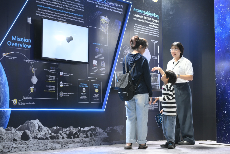 ที่สำคัญ วันที่ 11 สิงหาคม 2568 เตรียมพบกับไฮไลต์พิเศษที่พลาดไม่ได้! กับการจัดแสดง ชิ้นส่วนดาวเคราะห์น้อย “ริวกู” (Ryugu) จากภารกิจยานสำรวจฮายาบูสะ 2 ของประเทศญี่ปุ่น ที่ถูกนำออกมาจัดแสดงนอกประเทศเป็นครั้งแรก ให้คนไทยได้เห็นใกล้ ๆ ด้วยตาตัวเอง