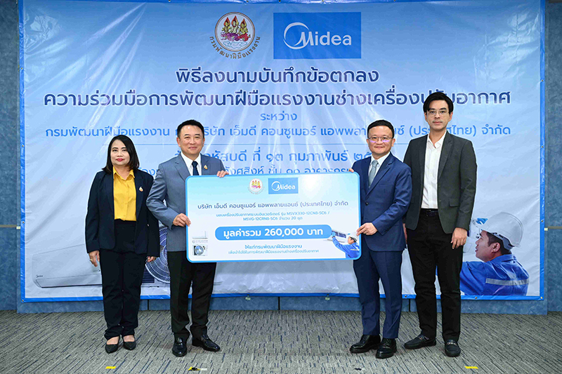 Midea (ไมเดีย) ผู้นำด้านเทคโนโลยีเครื่องปรับอากาศและเครื่องใช้ไฟฟ้าระดับสากล จับมือกรมพัฒนาฝีมือแรงงาน เสริมกำลังมุ่งยกระดับมาตรฐานช่างแอร์ไทย พร้อมมอบเครื่องปรับอากาศ 20 เครื่อง มูลค่า 2.6 แสนบาท โดยมีการลงนามบันทึกข้อตกลงความร่วมมือระหว่างกรมพัฒนาฝีมือแรงงาน และบริษัท เอ็มดี คอนซูเมอร์ แอพพลายแอนซ์ (ประเทศไทย) เพื่อพัฒนาฝีมือแรงงานช่างเครื่องปรับอากาศ
