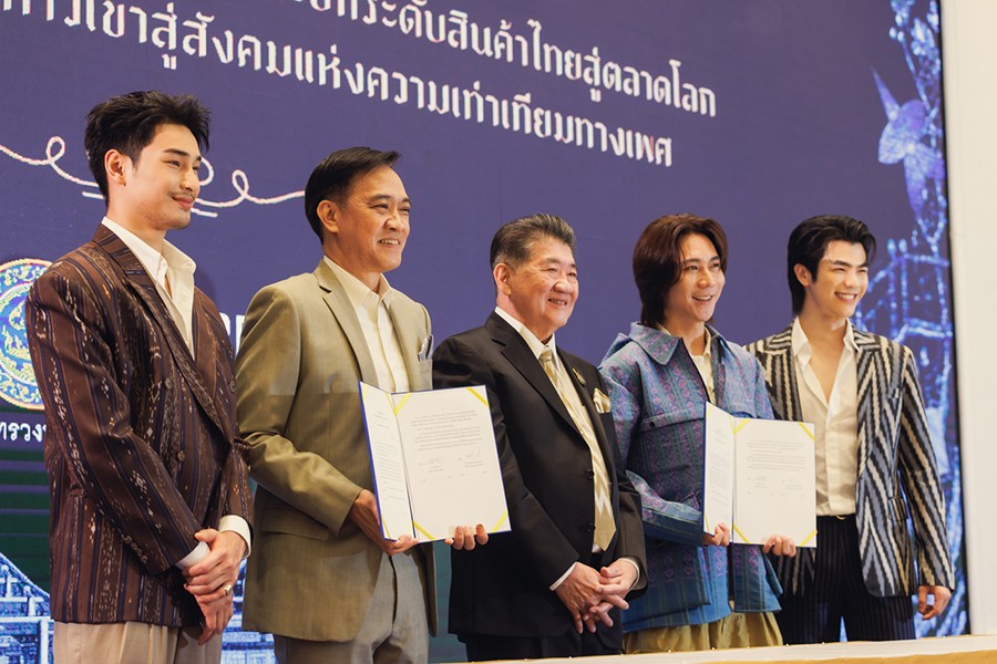 จัดงานยิ่งใหญ่สมกับเป็นโปรเจกต์ยักษ์รับปี 2567 สำหรับงานแถลงข่าวความร่วมมือระดับประเทศ ระหว่าง กระทรวงพาณิชย์ และ บริษัท บี ออน คลาวด์ ผู้ผลิตซีรีส์วายระดับโลก ที่จัดขึ้นเพื่อยกระดับสินค้าไทยออกสู่ตลาดโลกได้อย่างแท้จริง พร้อมสร้างความเข้าใจถึงความสำคัญของทุกภาคส่วนในการร่วมกันพัฒนาอุตสาหกรรมในหลากหลายมิติ และยังร่วมสนับสนุนประเทศไทยให้ก้าวเข้าสู่สังคมแห่งความเท่าเทียมทางเพศ เมื่อค่ำวันพุธที่ 31 มกราคม 2567 ณ กระทรวงพาณิชย์