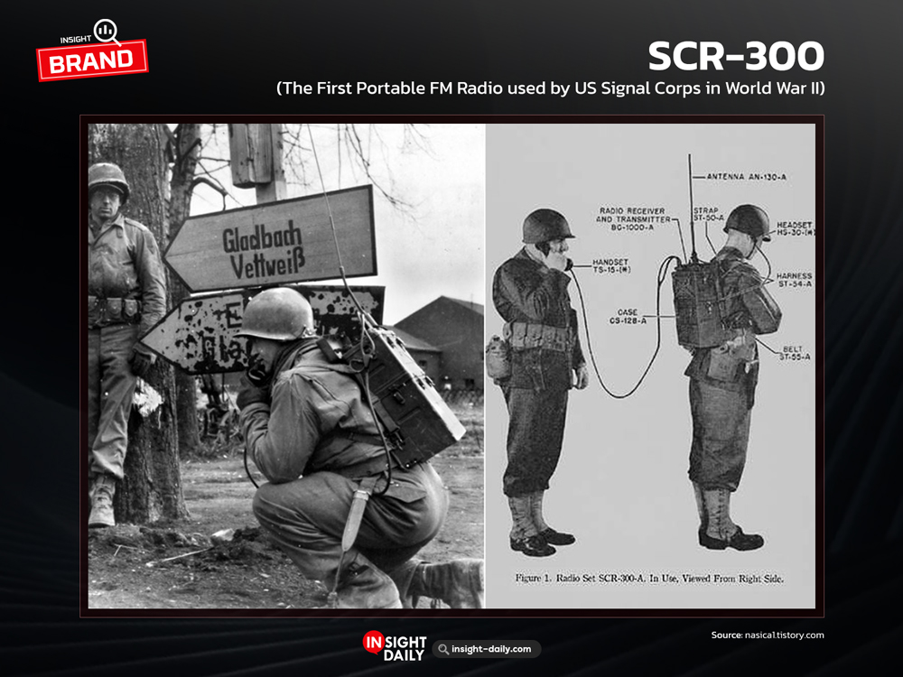 ปี 1943, เปิดตัว SCR300 วิทยุสื่อสารแบบพกพาเครื่องแรกของโลกที่ส่งสัญญาณผ่านคลื่นความถี่ FM และถูกนำไปใช้ในกองทัพสหรัฐฯ