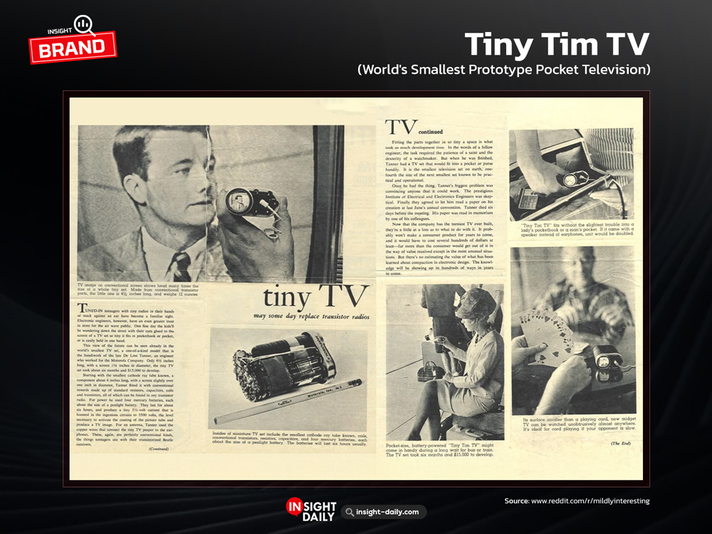 ปี 1966, เปิดตัวต้นแบบ Tiny Tim ทีวีพกพาขนาดเล็กที่สุดในโลกที่ใช้พลังงานจากถ่านไฟฉาย