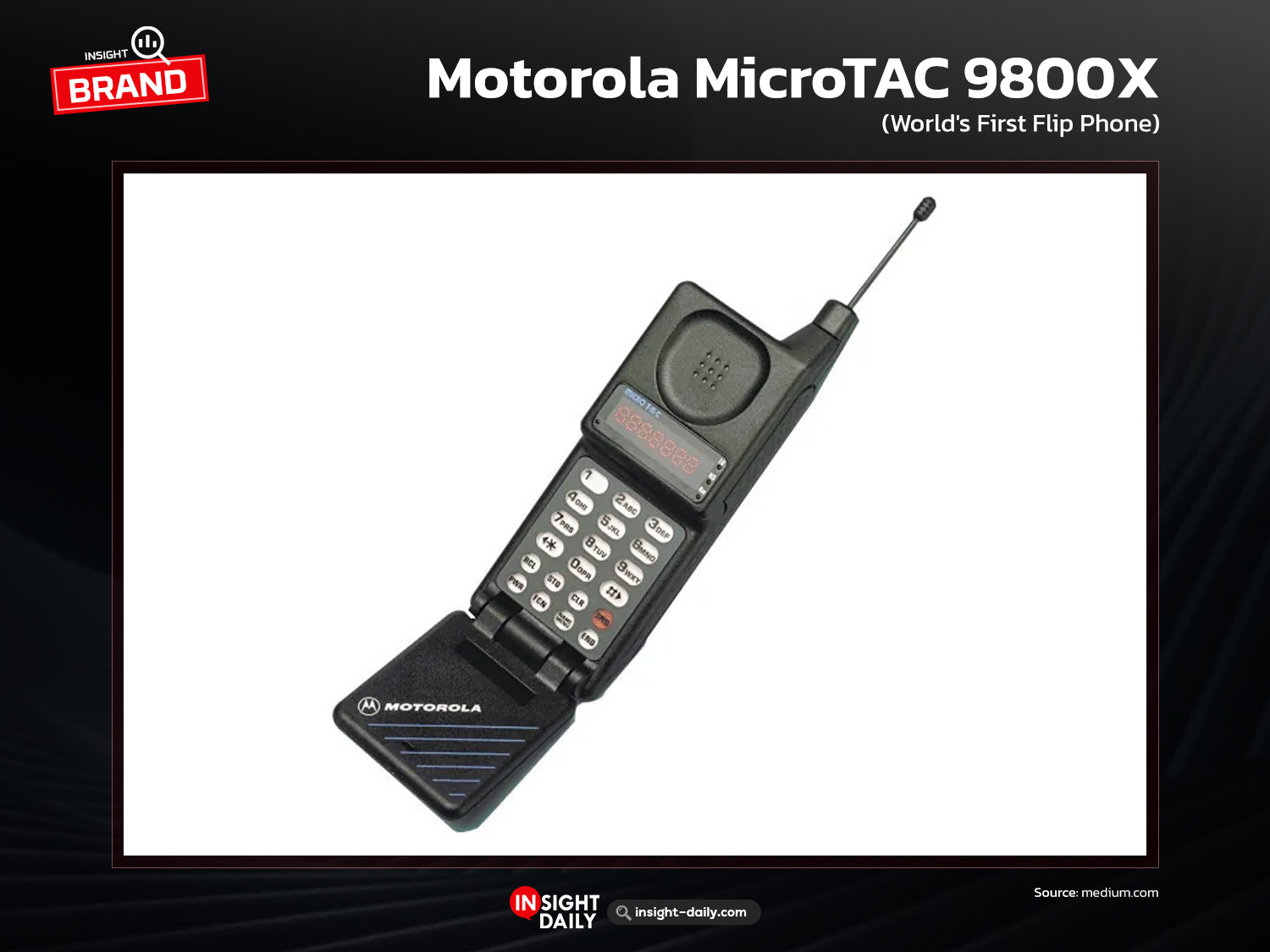 ปี 1989, Motorola เปิดตัว MicroTAC 9800X โทรศัพท์มือถือฝาพับรุ่นแรกของโลก และมีน้ำหนักเพียง 270 กรัม เท่านั้น