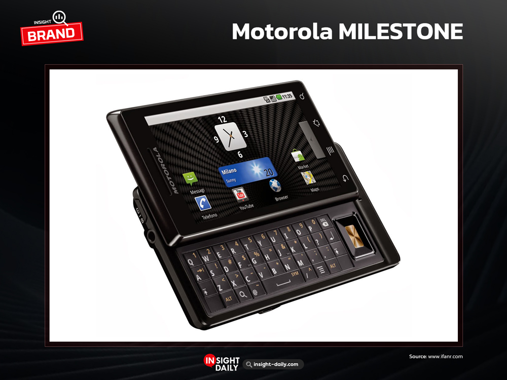 ปี 2009, Motorola ก้าวเข้าสู่วงการสมาร์ตโฟนเต็มตัวด้วยการเปิดตัว MILESTONE รุ่นแรกที่รัน Android 2.1 (Eclair) พร้อมแป้นพิมพ์แบบสไลด์