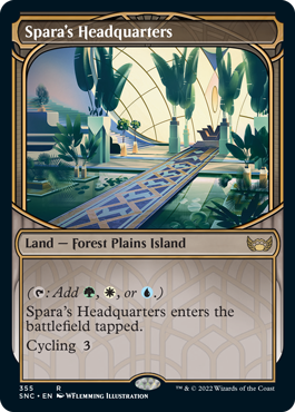 นอกจากนี้ การ์ด “Skyscraper” และ “Golden Age” ยังแสดงให้เห็นถึงสถานที่ที่มีชีวิตชีวาและความเป็นเอกลักษณ์อันหรูหราและมีมนต์เสน่ห์ของมหานคร New Capenna