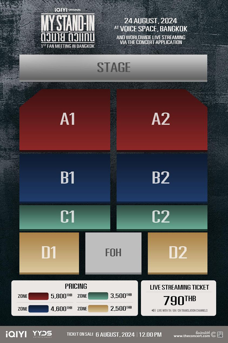 เปิดขายบัตรวันแรก 6 สิงหาคมนี้ บัตรราคา 5,800 / 4,600 / 3,500 / 2,500 บาท และ Live Streaming Ticket ราคา 790 บาท สามารถซื้อได้ผ่านทาง www.theconcert.com แฟน ๆ “MY STAND-IN ตัวนาย ตัวแทน” ห้ามพลาด งานนี้มีฟินกับฟิน