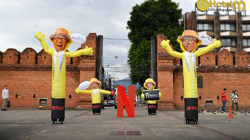 การโคจรมาพบกันระหว่าง Netflix และโน้ต-อุดม คือจุดร่วมของความบันเทิงที่ใครๆ ก็เข้าถึงได้ และความสะดวกในการรับชมได้ทุกที่ทุกเวลา Netflix จึงได้พาใบหน้าอารมณ์ดีของโน้ต-อุดมในเสื้อสูทสีเหลืองสะดุดตา พร้อมข้อความเชิญชวนให้ “ดูเดี่ยว 13 ได้ตามสะดวกที่ Netflix” โผล่ไปเซอร์ไพรส์ผู้ชมชาวไทยด้วยกิมมิกสุดฮา ทว่าเป็นที่จดจำ ซึ่งล้อไปเรื่องเล่าระดับตำนานและภาพจำจากเดี่ยวไมโครโฟนของโน้ต-อุดม ไม่ว่าจะเป็นป้ายสแตนดี้แซว “จ่าเฉย” ขนาดเท่าตัวจริง ป้ายโฆษณาขนาดยักษ์บนรถแดงที่วิ่งรอบเมืองเชียงใหม่ การ wrap รถทัวร์สายกรุงเทพฯ-เชียงใหม่ รวมถึงรถบรรทุกคันใหญ่ที่ตกแต่งอย่างโดดเด่นเป็นเอกลักษณ์ ซึ่งจะวิ่งในเส้นทางกรุงเทพฯ-เชียงใหม่และกรุงเทพฯ-ชลบุรี พร้อมจอดแวะตามจุดต่างๆ ให้แฟนๆ ได้เก็บภาพประทับใจ