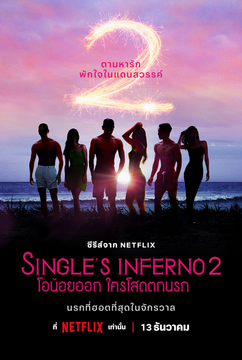 รายการจับคู่ออกเดตเรียลลิตี้สุดฮิต “Single’s Inferno: โอน้อยออก ใครโสดตกนรก” ซึ่งครองใจผู้ชมมาแล้วทั่วโลก กำลังจะกลับมาในซีซั่นที่ 2 วันที่ 13 ธันวาคมนี้ หลังจากซีซั่น 1 ได้เสียงตอบรับล้นหลามชนิดดังระเบิดไปทั่วโลกนับตั้งแต่เปิดตัว จนติดอันดับใน Netflix Top 10 (หมวดรายการทีวีภาษาต่างประเทศ) ทั่วโลก นานถึง 3 สัปดาห์ติดต่อกัน