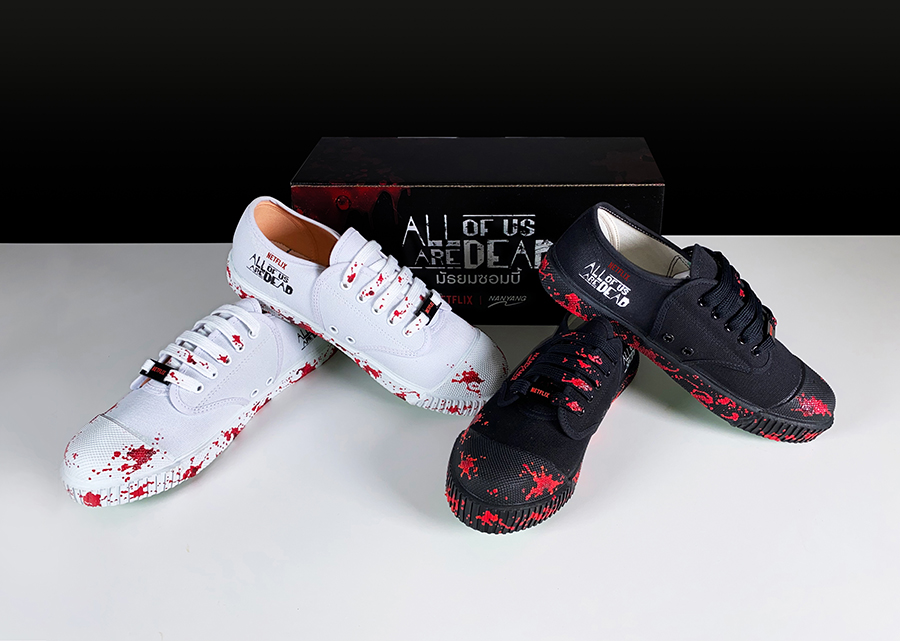 ยังไม่หมดเท่านี้! Netflix ยังเสริมจินตนาการในการเอาชีวิตรอดจากซอมบี้ให้อะดรีนาลีนพลุ่งพล่านขึ้นไปอีกขั้น ด้วยการจับมือกับแบรนด์รองเท้าที่นักเรียนไทยคุ้นเคยอย่าง “นันยาง” นำรองเท้าผ้าใบนักเรียนรุ่นคลาสสิกมาจัดทำดีไซน์พิเศษที่ชวนให้จินตนาการถึงสถานการณ์ที่โดนฝูงซอมบี้ไล่ล่าจนรองเท้าเต็มไปด้วยคราบเลือด ซึ่งต้องขอบอกเลยว่าเลือดทุกหยดบนรองเท้านั้นเกิดการจากเพนต์มืออย่างตั้งใจ ไม่ซ้ำใครแน่นอน! ติดตามร่วมสนุกกับกิจกรรมเพื่อลุ้นรับรองเท้าผ้าใบรุ่นพิเศษนี้ได้ที่เฟซบุ๊กแฟนเพจ นันยาง ตั้งแต่วันที่ 1 กุมภาพันธ์ เป็นต้นไป