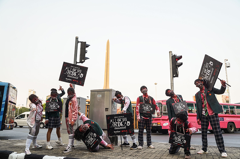 Netflix ประเดิมต้นปีอย่างยิ่งใหญ่ ทุ่มทุนโปรโมตซีรีส์ มัธยมซอมบี้ (All of Us Are Dead) แบบจัดเต็มใจกลางกรุงเทพมหานคร ปลุกกระแส K-Zombie ด้วยความระทึกเมื่อรถบัสทั้งคันถูกพลิกโฉมให้เสมือนเป็นรถโรงเรียนที่หลุดออกมาจากสมรภูมิซอมบี้ ต้อนรับการเปิดตัวของซีรีส์ มัธยมซอมบี้ (All of Us Are Dead) ที่พร้อมให้ชมได้แล้ววันนี้ที่ Netflix เท่านั้น