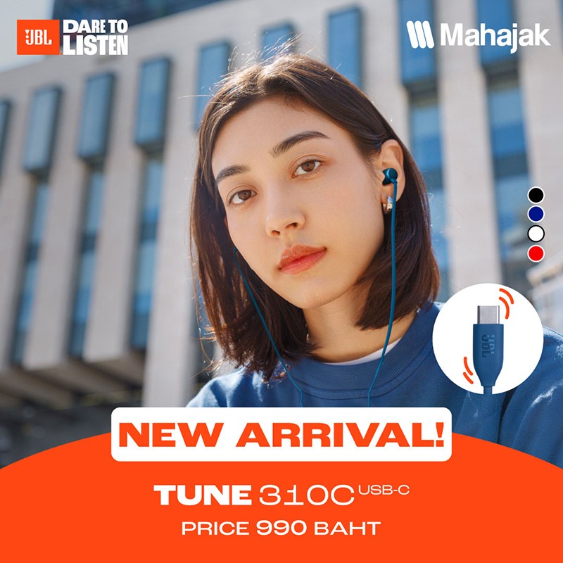NEW! JBL TUNE 310C USB-C หูฟังอินเอียร์สายแบนทนทานใช้งานง่าย พร้อมคุณภาพเสียงคมชัดระดับ HI-RES