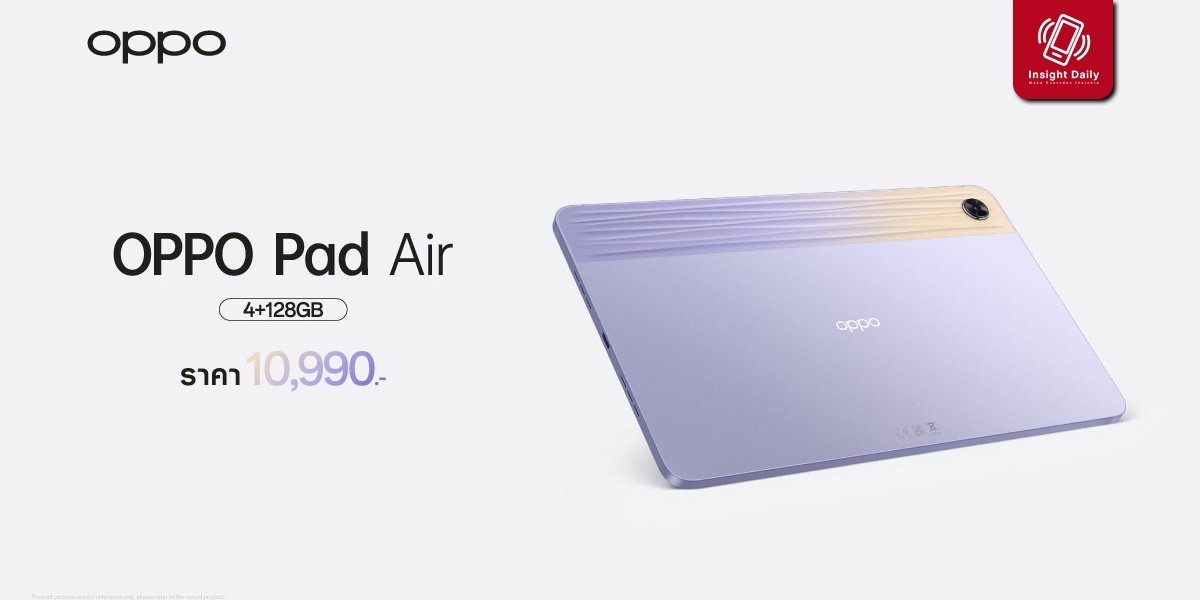 ออปโป้ ไทยแลนด์ เปิดตัวแท็บเล็ต “OPPO Pad Air” สีใหม่ สีม่วงโดดเด่น ชูสโลแกน “ดีไซน์บาง โฉบเฉี่ยว สนุกได้ไม่จำกัด” พร้อมอัปเกรดความจุเพิ่มขึ้นเป็น 4+128GB น้ำหนักเบาเพียง 440 กรัม พกพาสะดวก พร้อมหน้าจอถนอมสายตา 2K และลำโพงสเตอริโอ 4 ตัวระบบ Dolby Atmos วางจำหน่ายในราคา 10,990 บาท สัมผัสและเป็นเจ้าของผลิตภัณฑ์ IoT รุ่นล่าสุดจากออปโป้ได้แล้วตั้งแต่วันที่ 24 มีนาคม 2566 เป็นต้นไป ณ OPPO Brand Shop ทุกสาขา และตัวแทนจำหน่ายทั่วประเทศ