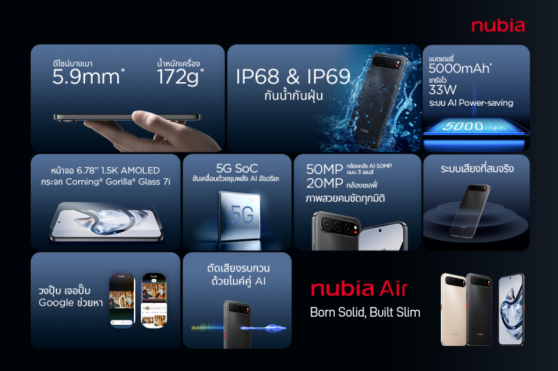 nubia Air “Born Solid, Built Slim” สมาร์ทโฟนดีไซน์บางเฉียบ แข็งแกร่งเหนือขีดจำกัด