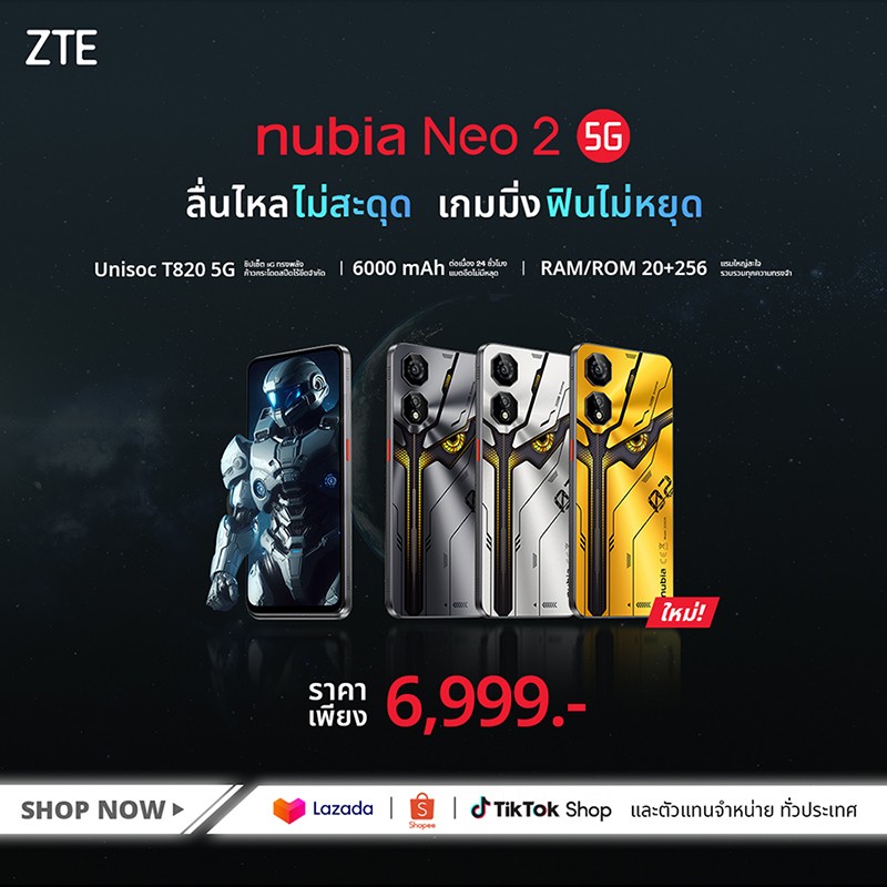 nubia Neo 2 5G สมาร์ตโฟน ‘ลื่นไหลไม่สะดุด เกมมิ่งฟินไม่หยุด’ สเปคครบครัน ราคาช็อกตลาดเพียง 6,999 บาทเท่านั้น