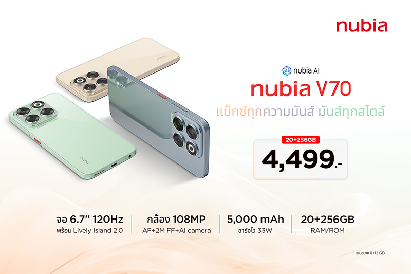 เปิดตัว nubia V70 Series สมาร์ทโฟนสุดคุ้มแห่งปี! แม็กซ์ทุกความมันส์ มันส์ทุกสไตล์