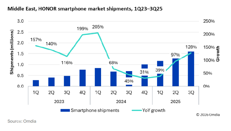 - ตะวันออกกลางและแอฟริกา (Middle East & Africa) ถือเป็นเครื่องยนต์การเติบโตใหม่ของ HONOR โดยยอดขายรวมเริ่มขยับเข้าใกล้ระดับเดียวกับลาตินอเมริกา จุดแข็งของภูมิภาคนี้อยู่ที่กำลังซื้อที่ค่อนข้างสูง เอื้อต่อการทำตลาดสมาร์ตโฟนระดับพรีเมียม โดยเฉพาะในกลุ่มประเทศอ่าวอาหรับ (GCC)