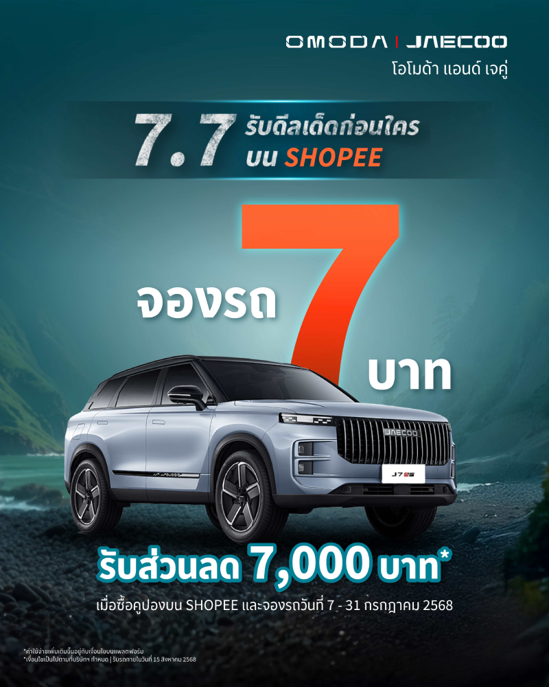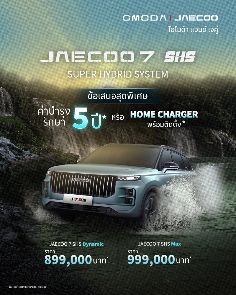OMODA & JAECOO (โอโมด้า แอนด์ เจคู่) ผู้นำด้านนวัตกรรมยานยนต์ระดับโลก เดินหน้าส่งมอบแคมเปญพิเศษประจำเดือนกรกฎาคม 2568 พร้อมข้อเสนอสุดพิเศษสำหรับรถทุกรุ่น เริ่มต้นด้วย JAECOO 7 SHS ยนตรกรรมอเนกประสงค์รุ่นล่าสุด มาพร้อมราคาเริ่มต้นที่ 899,000 บาท สำหรับรุ่น Dynamic และ 999,000 บาท สำหรับรุ่น Max พร้อมให้ลูกค้าเลือกรับสิทธิพิเศษที่ตอบโจทย์การใช้งานระหว่างแพ็กเกจค่าบำรุงรักษาฟรีนาน 5 ปี หรือ Home Charger พร้อมติดตั้ง และข้อเสนอพิเศษอีกมากมาย ตั้งแต่วันที่ 1 – 31 กรกฎาคม 2568