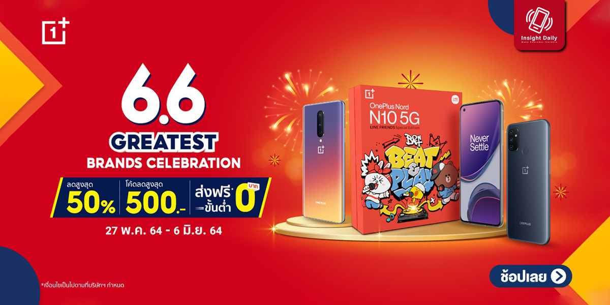 OnePlus 6.6 Greatest Celebration เทศกาลลดสุดแรงกลางปี จัดเต็มทุกโปร ลดสูงสุด 50% พร้อมคูปองลดเพิ่ม 500.- ส่งฟรีทุกไอเท็ม! ของรางวัลแจกเพียบ