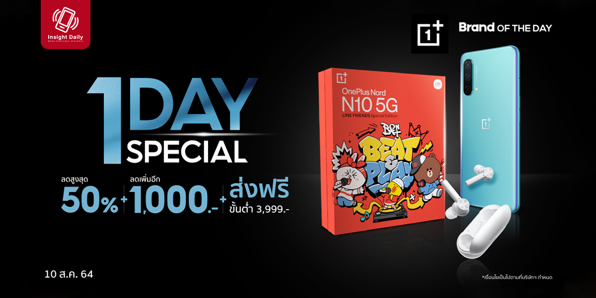 OnePlus One Day Special 10 ส.ค. 64 วันเดียวเท่านั้น ลดสูงสุด 50% พร้อมแจกโค้ดลดเพิ่มสูงสุด 1,500.-
