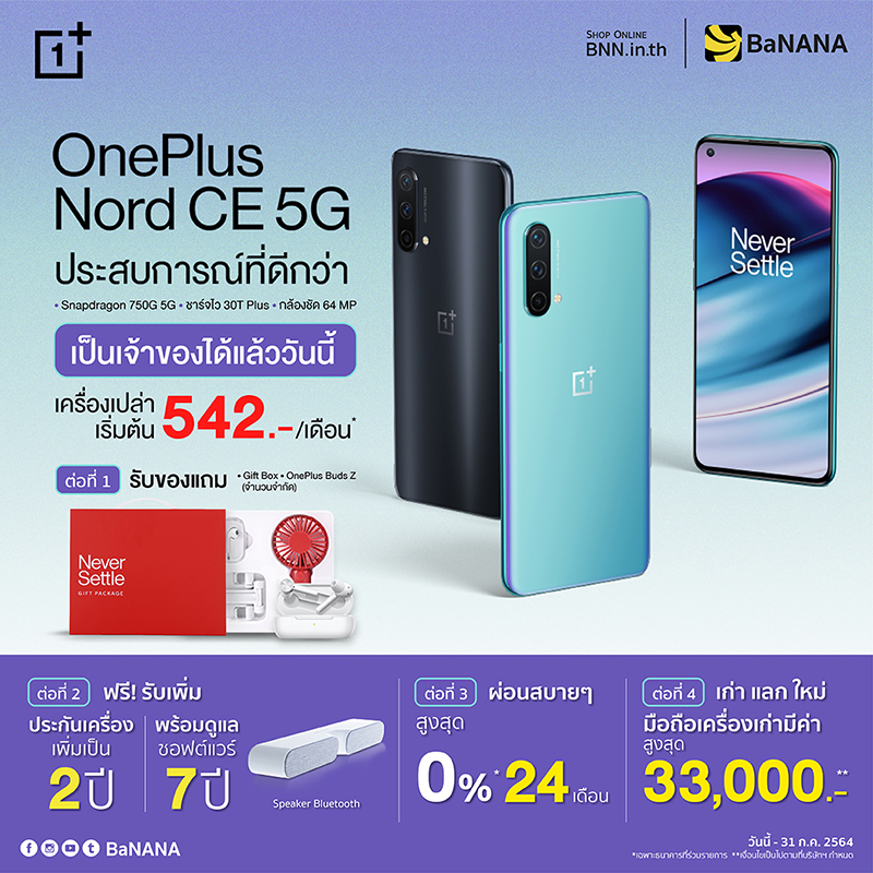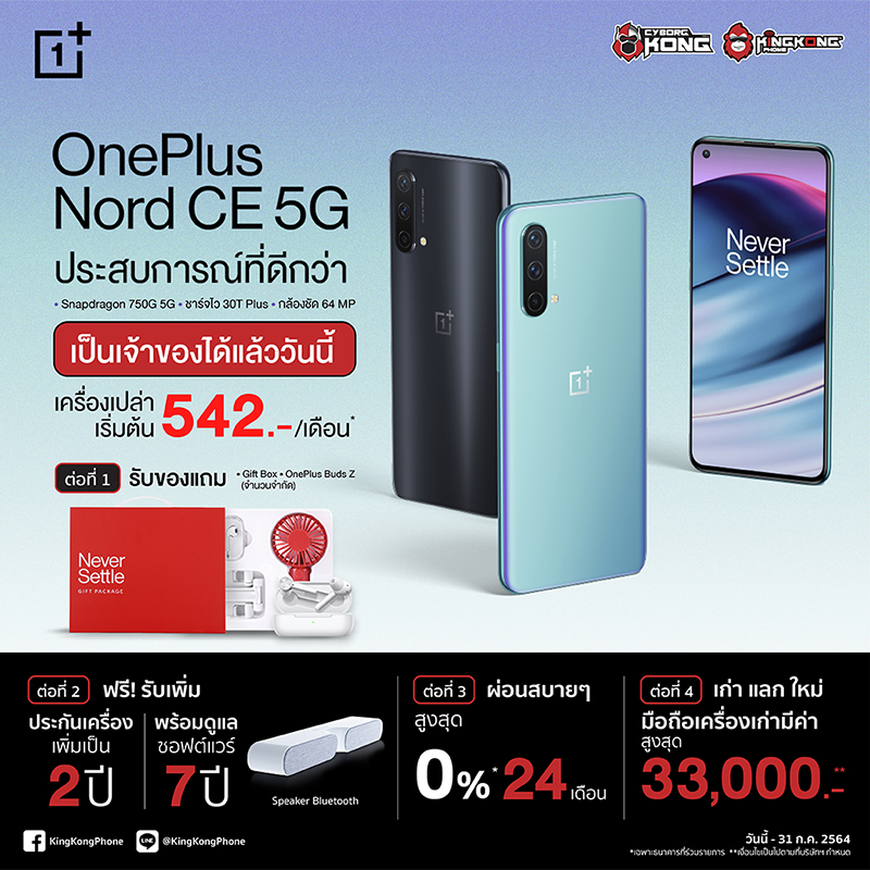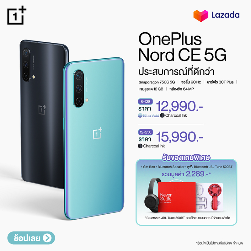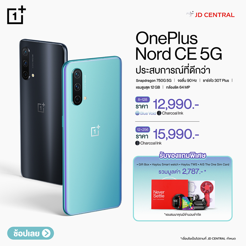 หาซื้อและเป็นเจ้าของ OnePlus Nord CE 5G ผ่านตัวแทนจำหน่ายอย่างเป็นทางการทั่วประเทศพร้อมรับฟรี! ของแถมสุดพิเศษจากแต่ละช่องทางการจำหน่ายและผู้ให้บริการเครือข่ายทั้งอย่าง AIS, DTAC และ TrueMove H รวมทั้ง Jaymart, BaNANA IT, TG FONE ที่ร่วมรายการทั่วประเทศ และ OnePlus Experience Zone by TG FONE ตลอดจนช่องทางออนไลน์ได้ที่ Lazada, Shopee, JD Central และ Thisshop