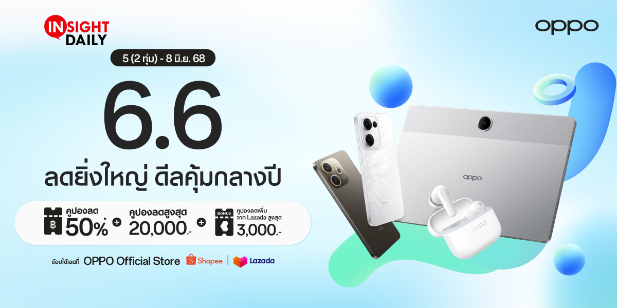 OPPO จัดดีลสุดคุ้ม “6.6 ลดยิ่งใหญ่ ดีลคุ้มกลางปี” มอบส่วนลดสมาร์ตโฟนและอุปกรณ์ IoT สูงสุด 50%