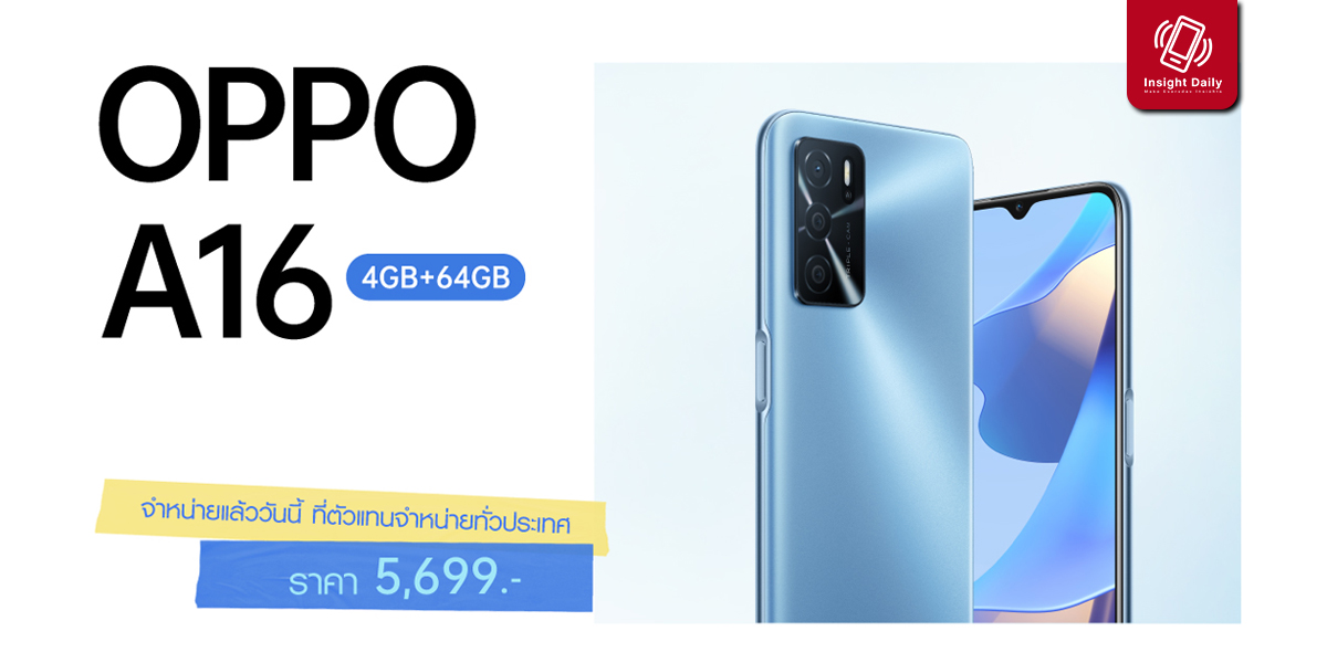 OPPO A16 รุ่น RAM 4GB + ROM 64GB วางจำหน่ายแล้ววันนี้ ในราคา 5,699 บาท