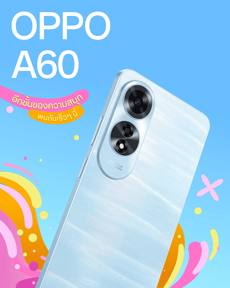 เตรียมพบกับ OPPO A60 สมาร์ตโฟนใหม่ล่าสุดจาก A Series พร้อมก้าวไปอีกขั้นของความสนุกในทุกสถานการณ์