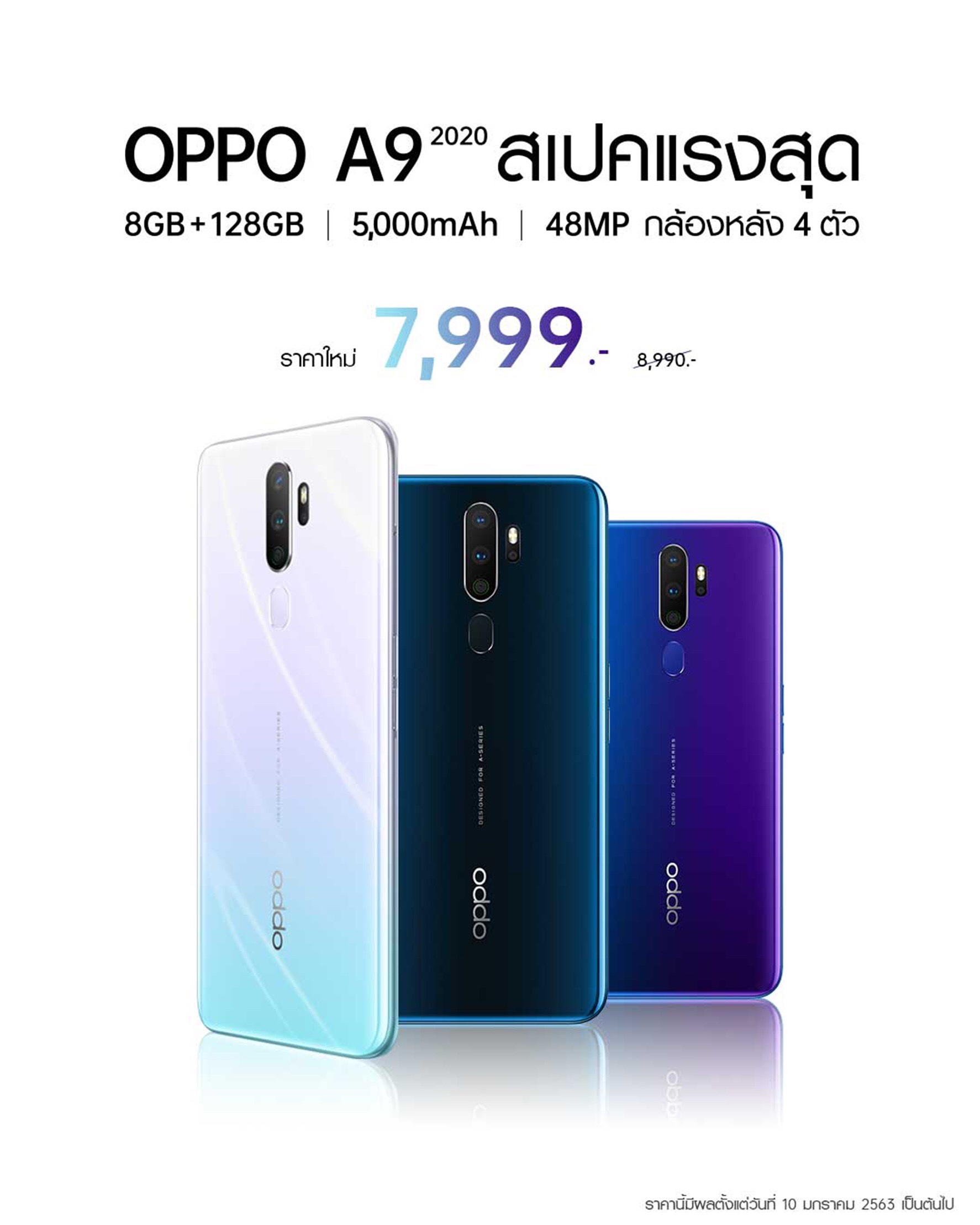 OPPO A9 2020 ปรับราคาจากเดิม 8,990 บาท เหลือเพียง 7,999 บาท