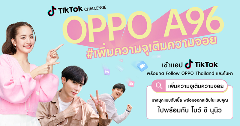 ออปโป้ชวนชาว TikTok ร่วมเก็บความน่ารักแบบไม่อั้น ในชาเลนจ์ #เพิ่มความจุเติมความจอย ลุ้นรับ OPPO A96