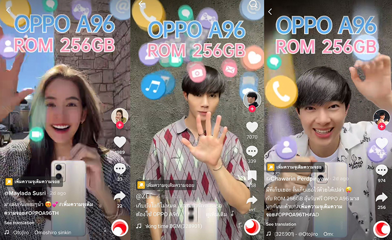 - ติดแฮชแท็ก #เพิ่มความจุเติมความจอย #OPPOA96TH