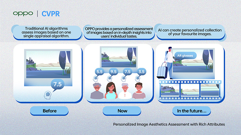ด้วยความร่วมมือกับ Leida Li ศาสตราจารย์จากมหาวิทยาลัย Xidian OPPO Research Institute ได้นำเสนอวิธีแก้ปัญหานี้ด้วยโมเดลนวัตกรรม Personalized Image Aesthetics Assessment (PIAA) โดยโมเดลนี้เป็นรุ่นแรกที่มีการพัฒนาการประเมินคุณค่าทางความงามของ AI ให้เหมาะสมด้วยการผสมผสานความชอบส่วนตัวของผู้ใช้เข้ากับค่านิยมด้านความงามทั่วไปมากขึ้น ทำให้อัลกอริธึมสามารถทำการประเมินภาพตามความชอบจากการศึกษาโปรไฟล์ผู้ใช้ และในอนาคต โมเดลนี้จะถูกนำมาใช้เพื่อสร้างประสบการณ์ในสไตล์ของผู้ใช้ ไม่เพียงแต่คัดสรรอัลบั้มภาพเท่านั้น แต่ยังมอบคำแนะนำเกี่ยวกับวิธีการถ่ายภาพและคอนเทนต์ที่ผู้ใช้ชื่นชอบที่สุด