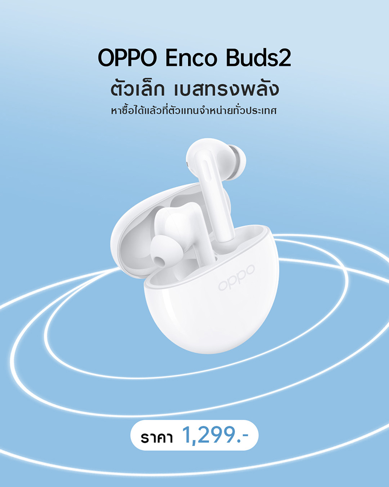 OPPO Enco Buds2 หูฟังไร้สายตัวเล็ก เบสทรงพลัง เพลิดเพลินได้ไปกับทุกจังหวะในชีวิต ในราคา 1,299 บาท