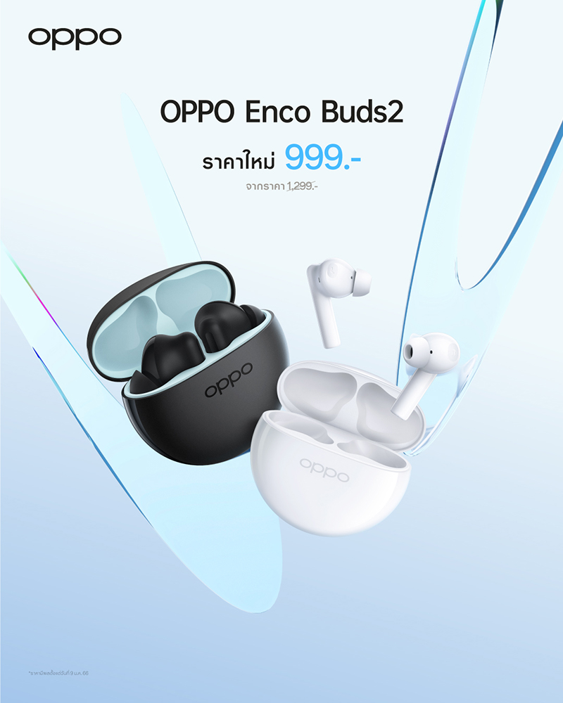 OPPO Enco Buds2 หูฟังไร้สายตัวเล็ก เบสทรงพลัง พร้อมส่งมอบประสบการณ์เสียงระดับคุณภาพ คมชัด สมจริง ให้คุณเพลิดเพลินไปกับทุกจังหวะในชีวิต มาพร้อมดีไซน์ขนาดเล็ก หยิบใช้งานง่าย ใส่สบายตลอดวัน ใช้งานได้ยาวนาน ชาร์จเร็ว และเชื่อมต่อได้เสถียร ในราคาใหม่เพียง 999 บาท จากราคาปกติ 1,299 บาท ตั้งแต่วันที่ 9 มกราคม 2566 เป็นต้นไป