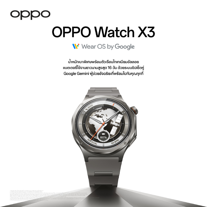 “OPPO Enco Air5 Pro” มาพร้อมเทคโนโลยีตัดเสียงรบกวนระดับสูง มอบประสบการณ์การฟังที่คมชัดในทุกสภาพแวดล้อม พร้อมใช้งานได้ยาวนานสูงสุด 54 ชั่วโมง และ “OPPO Watch X3” สมาร์ตวอทช์รุ่นเรือธงมาพร้อมดีไซน์พรีเมียมตัวเรือนไทเทเนียมอัลลอยด์น้ำหนักเบาพิเศษมาพร้อมกับระบบชิปเซ็ตคู่ประสิทธิภาพสูง และ Google Gemini ผู้ช่วยอัจฉริยะที่พร้อมไปด้วยทุกที่ พร้อมแบตเตอรี่ใช้งานยาวนานสูงสุด 16 วัน