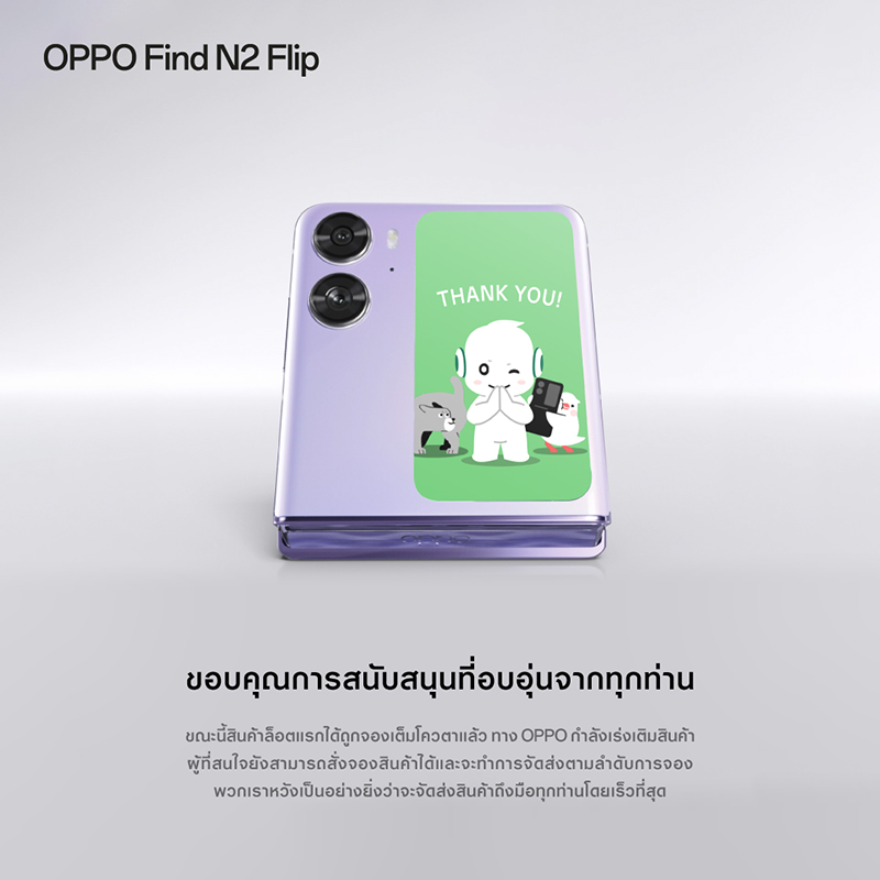 OPPO ขอขอบคุณทุกการสนับสนุนที่อบอุ่นจากทุกท่าน ด้วยผลตอบรับที่ดีเยี่ยมทำให้ขณะนี้สินค้าล็อตแรกได้ถูกจองเต็มโควตาแล้ว โดยเรากำลังเร่งเติมสินค้า ผู้ที่สนใจสามารถสั่งจองสินค้าได้ที่หน้าร้าน OPPO Brand Shop และตัวแทนจำหน่ายทั่วประเทศ โดยทางเราจะทำการจัดส่งตามลำดับการจอง พวกเราหวังเป็นอย่างยิ่งว่าจะสามารถจัดส่งสินค้าถึงมือทุกท่านโดยเร็วที่สุด