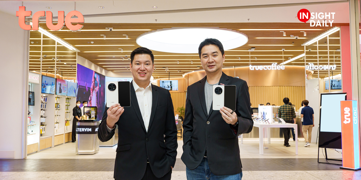 OPPO โดย คุณชานนท์ จิรายุกุล ประธานกรรมการอาวุโสฝ่ายบริหาร ออปโป้แห่งประเทศไทย (ซ้าย) จับมือพันธมิตร ทรู คอร์ปอเรชั่น โดย คุณปิยะพันธุ์ นาคะโยธิน หัวหน้าสายงานบริหารธุรกิจค้าปลีก บมจ.ทรู คอร์ปอเรชั่น (ขวา) เปิดตัว OPPO Find N5 สมาร์ตโฟนจอพับที่บางที่สุด ยกระดับความทรงพลังในทุกมิติ พร้อมโปรโมชันพิเศษจากทรู ดีแทค